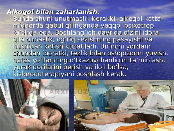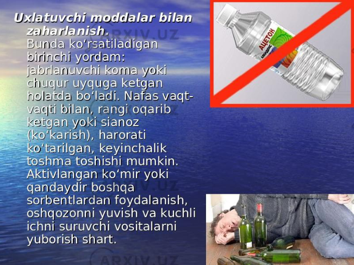 Ba’zi zaharlanish turlari va ularga birinchi yordam