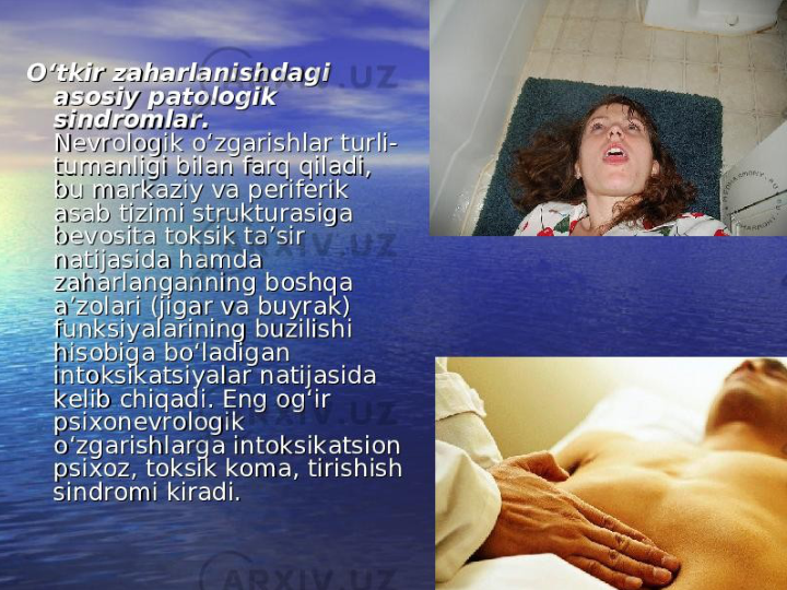 O‘tkir zaharlanishdagi asosiy patologik sindromlar.