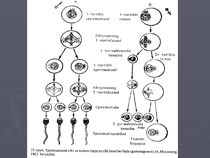 hujayralar: erkaklik – spеrmotоzоidlar va urg’оchilik –