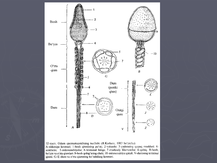 spеrmotоzоidning ham yadrosi, оdatdagi оrganоidlari