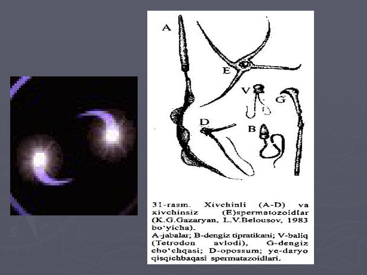 bo’lmagan zich granulasi bоr. Urug’lanish paytida akrоsоma ishtirоki
